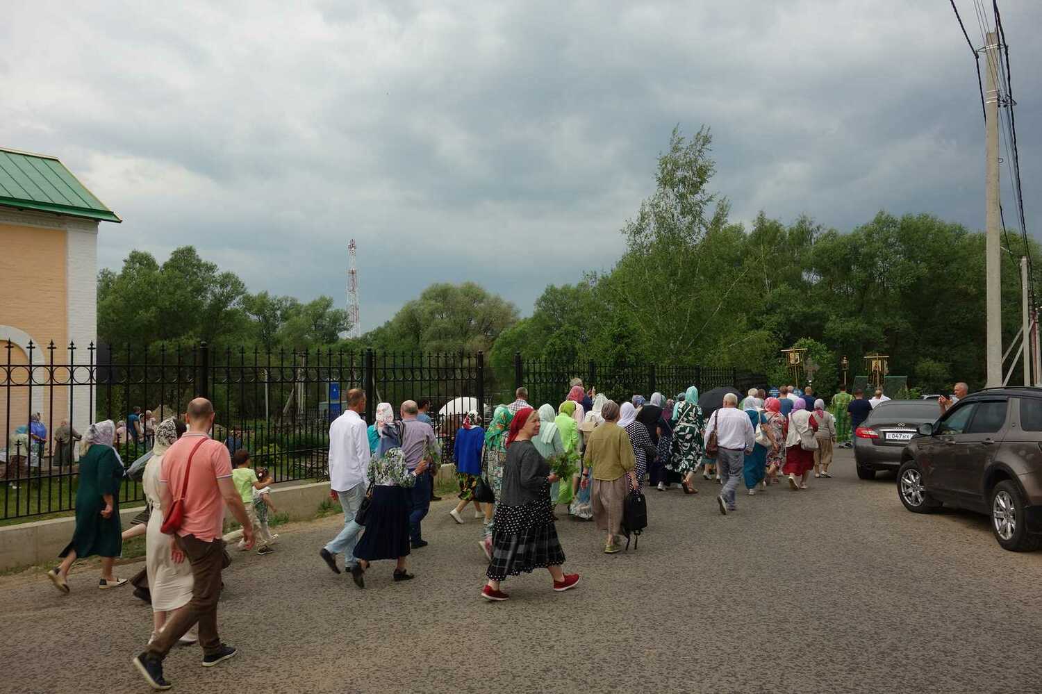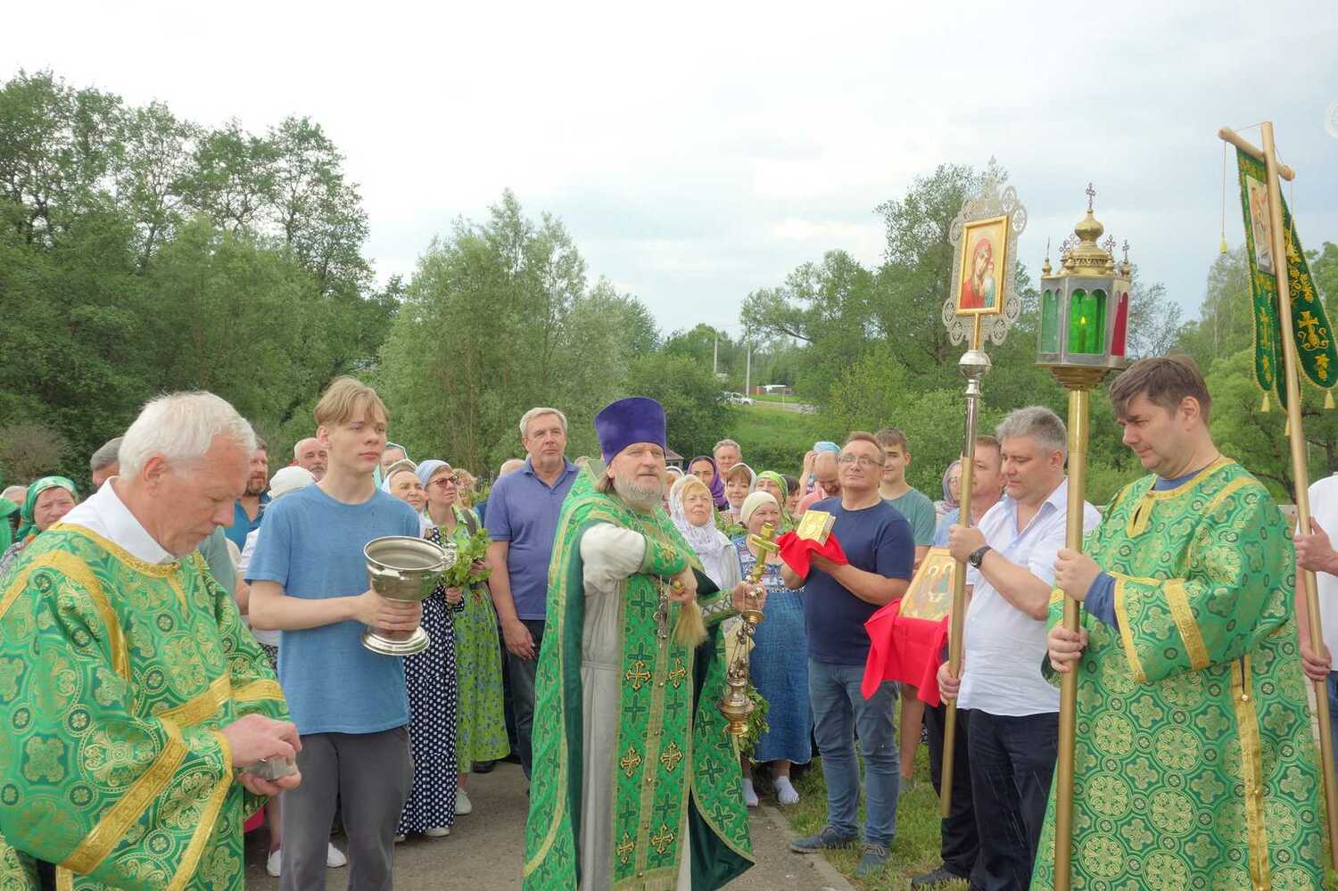 По совершении Божественной Литургии и Великой вечерни с коленопреклонными молитвами о Церкви, мире и единомыслии, о спасении всех молящихся и о упокоении душ всех усопших прихожане с зажжёнными свечами, веточками берёзы, цветами, иконами и хоругвями под хрустальный колокольный перезвон Крестным ходом прошли вокруг храма. Торжественное шествие проследовало по селу Васюнино.